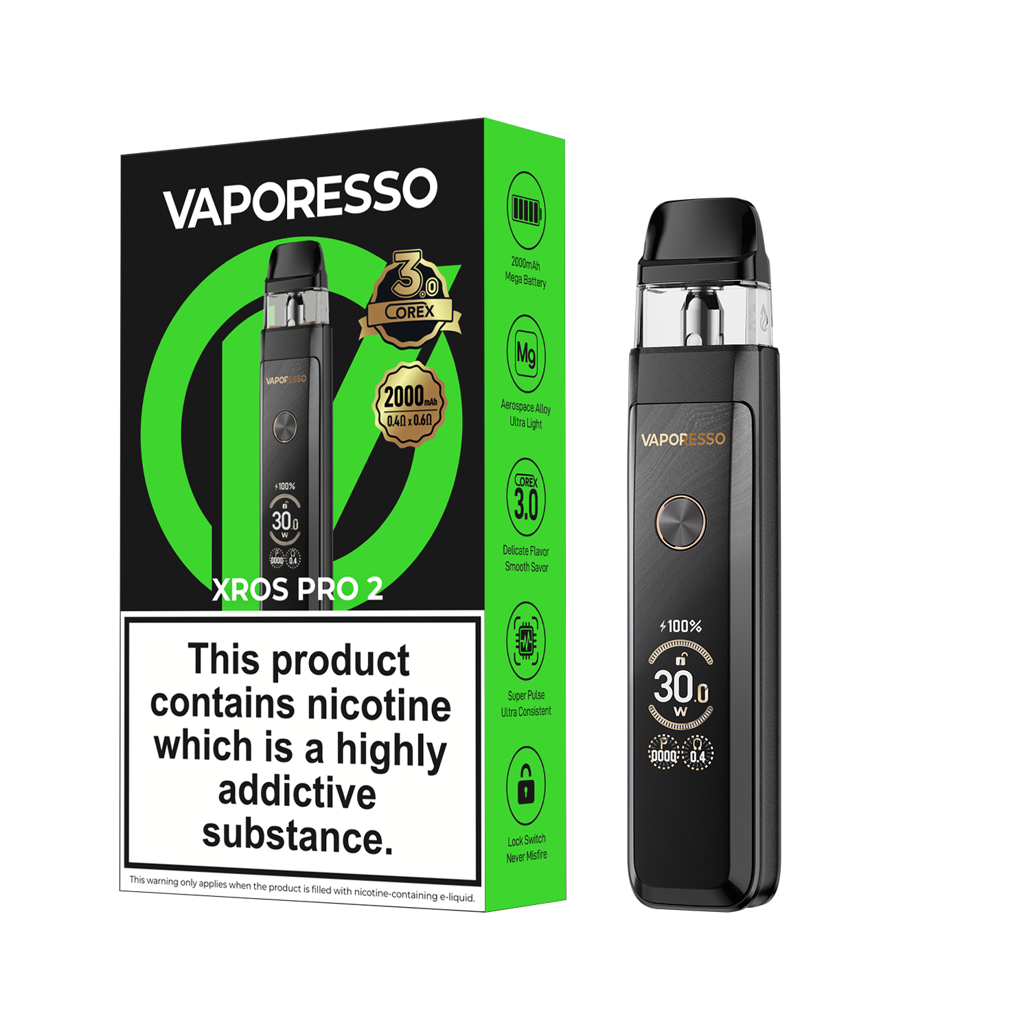 Vaporesso’s XROS Pro 2 pod kit combines sleek portability with powerful performance, delivering rich, consistent flavour in every puff. The XROS Pro 2 debuts Vaporesso's cutting-edge COREX 3.0 mesh technology, engineered to maximise flavour accuracy, boost coil longevity, and enhance vapour production for a superior vaping experience. Built with endurance in mind, the XROS Pro 2 features a massive 2000 mAh battery that supports rapid recharging in under 30 minutes, keeping you powered for up to two consecutive days of vaping.